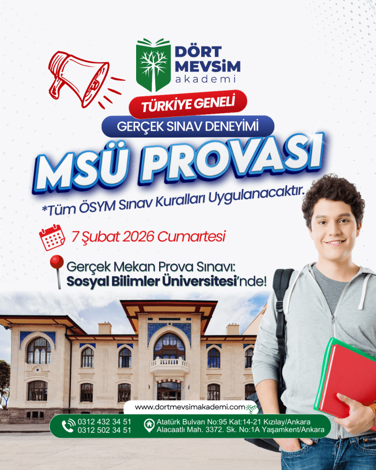 Ankara Kızılay’da AYT ve TYT kursları ile kaliteli eğitimin adresi Dört Mevsim Akademi. Sınava hazırlık için doğru adres.